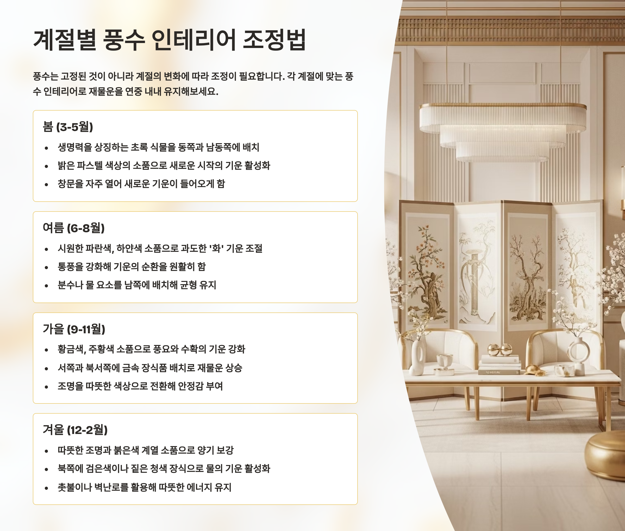🌸 계절별 풍수 인테리어 조정법