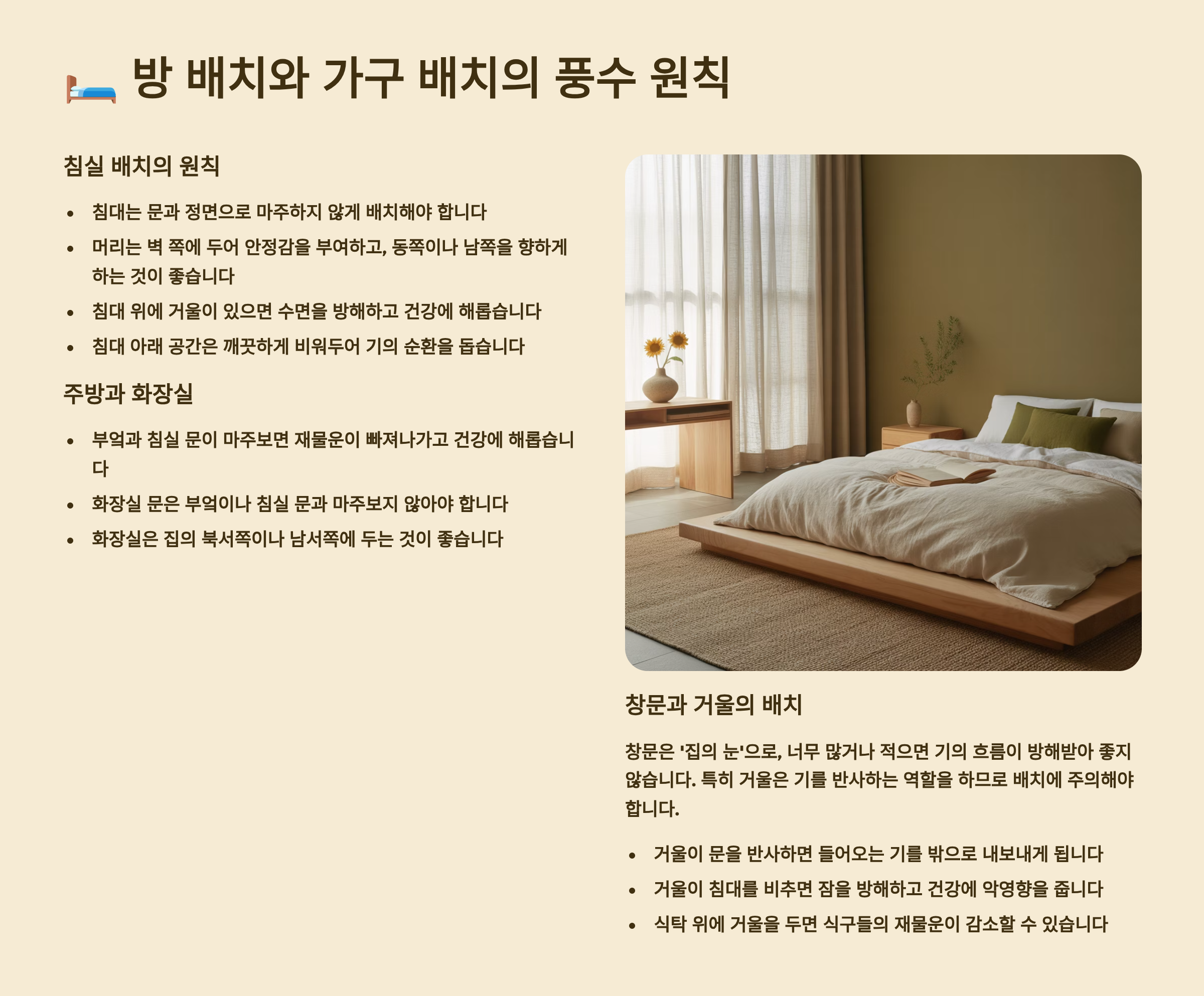 🛏️ 방 배치와 가구 배치의 풍수 원칙