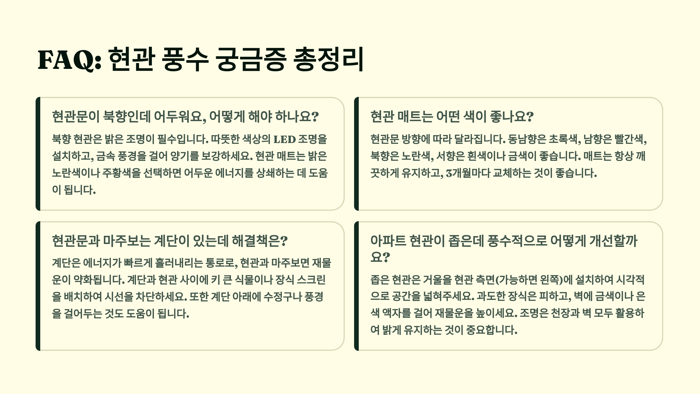 Q29. 현관이 너무 좁은데 풍수 적용이 가능한가요?